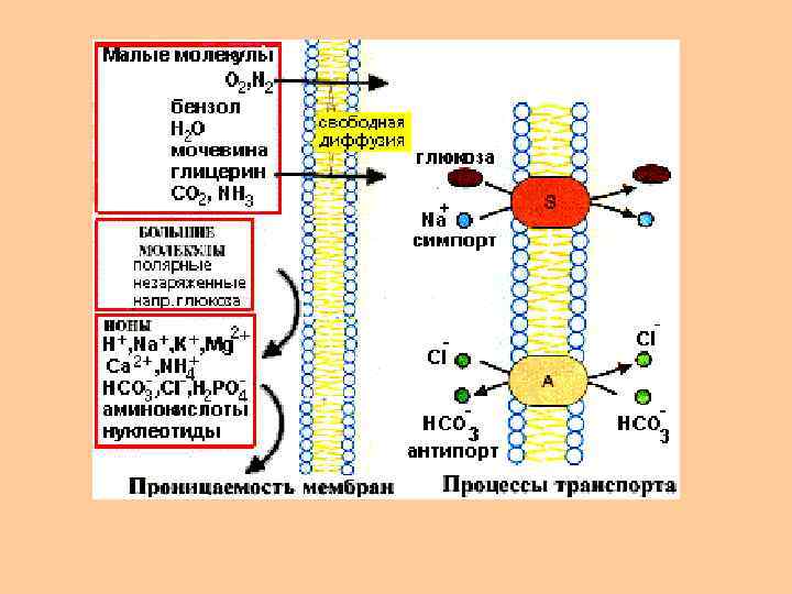 Транспорт через мембрану • Пассивный или активный процесс • Через бислой липидов или с помощью белков Коэф. прон. мембраны 10 -10 -10 -9 м·с-1 • Избирательность • В основе – трансмембранный потенциал