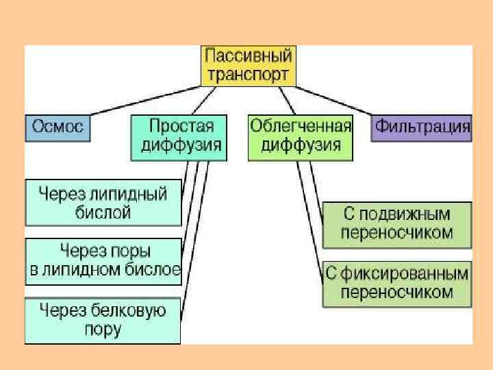 Простая диффузия • характерна для небольших нейтральных молекул (H 2 O, CO 2, O 2), а также гидрофобных низкомолекулярных органических веществ; • транспорт через бислой липидов или гидрофильные липидные и белковые поры