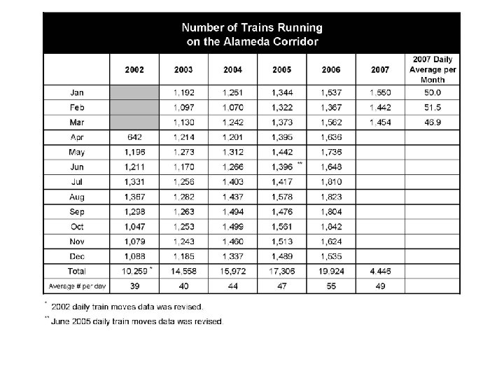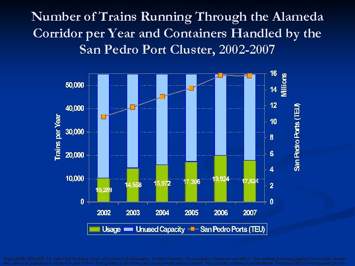 Number of Trains Running Through the Alameda Corridor per Year and Containers Handled by the San Pedro Port Cluster, 2002 -2007 Copyright © 1998 -2007, Dr. Jean-Paul Rodrigue, Dept. of Economics & Geography, Hofstra University. For personal or classroom use ONLY. This material (including graphics) is not public domain and cannot be published, in whole or in part, in ANY form (printed or electronic) and on any media without consent. This includes conference presentations. Permission MUST be requested prior to