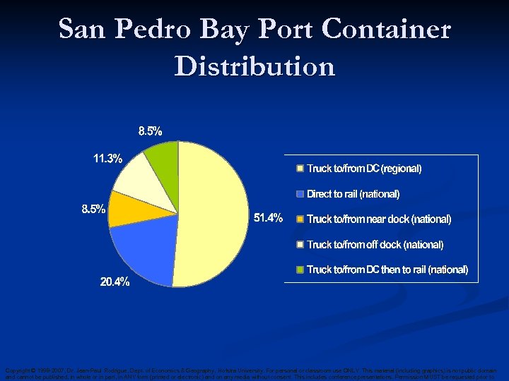 San Pedro Bay Port Container Distribution Copyright © 1998 -2007, Dr. Jean-Paul Rodrigue, Dept. of Economics & Geography, Hofstra University. For personal or classroom use ONLY. This material (including graphics) is not public domain and cannot be published, in whole or in part, in ANY form (printed or electronic) and on any media without consent. This includes conference presentations. Permission MUST be requested prior to