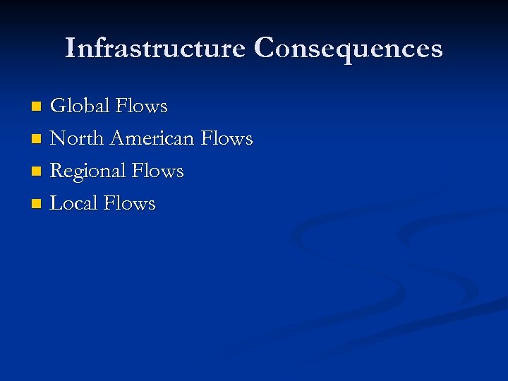 Infrastructure Consequences Global Flows n North American Flows n Regional Flows n Local Flows n