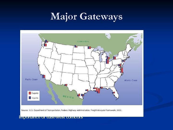 Major Gateways Importance of east-west corridors