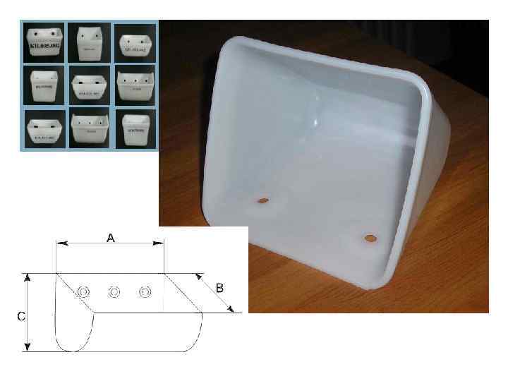 Ковши норийные Характеристика КН. 005. 002 КН. 010. 002 КН. 020. 002 КН. 100. 002 КН. 175. 002 Назначение Ковши норийные из полимерных материалов для норий производительностью 5, 10, 20, 100 и 175 т/ч. ширина, мм. 105 125 150 260 390 высота, мм. 70 150 160 185 вылет, мм. 85 125 150 175 емкость, л. 0, 4 1, 2 1, 5 3, 6 7, 2 расстояние между центрами отверстий, мм. 58 85 90 90 90 количество отверстий для крепления, шт. 2 2 2 3 4