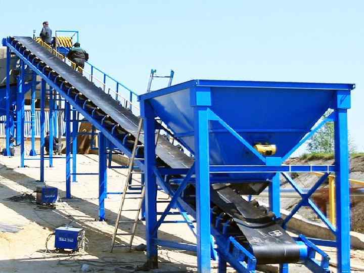 Пластинчатые конвейеры в строительстве используют при транспортировании крупнокусковых материалов, например для подачи камня в дробилки. Пластинчатый конвейер состоит из двух бесконечных цепей, установленных на ведущей и ведомой звездочках, пластин, которые соединяют цепи и уложены так, что образуют сплошной настил, и привода. Цепи поддерживаются роликами.
