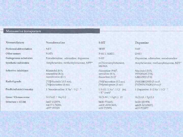 Neurotransmitter transporter families