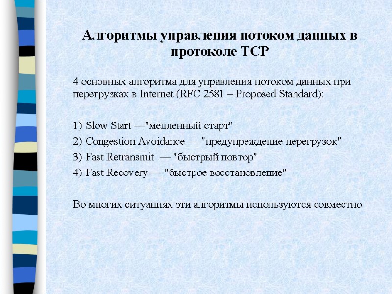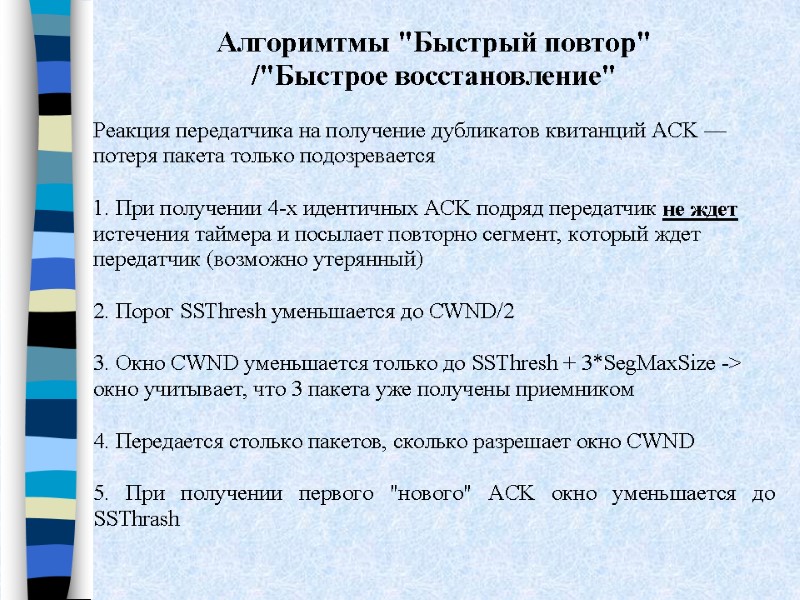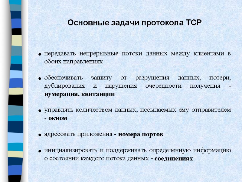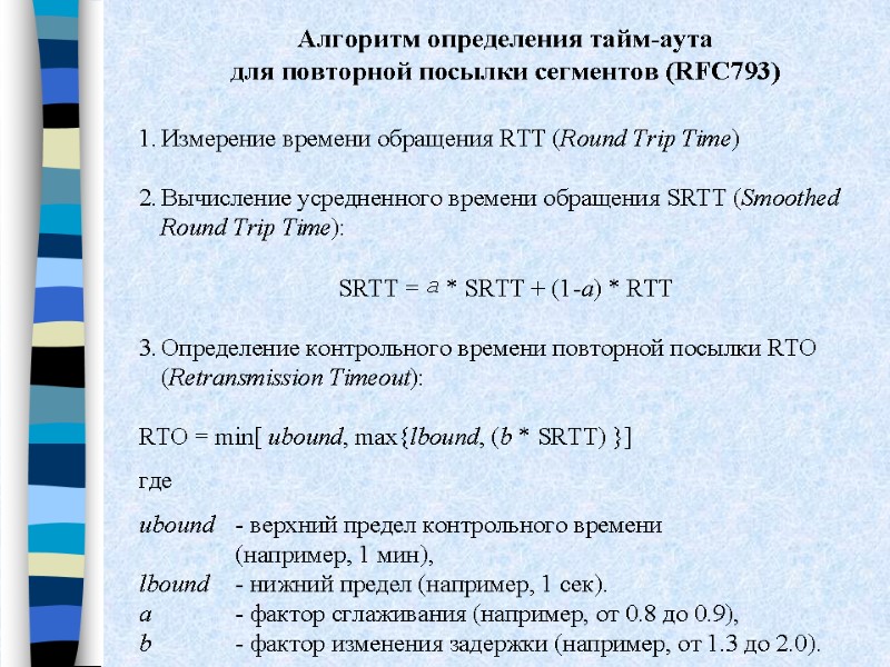 Протокол надежной передачи данных TCP (RFC 793) Сравнение с UDP Порты, сокеты, соединения Концепция скользящего окна Процедура установления соединения Процедура квитирования в TCP Адаптивный выбор тайм-аута Реакция на перегрузку