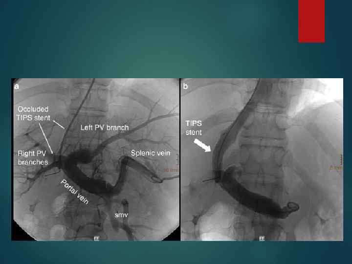 Показателем эффективности наложения TIPSS является градиент давления между воротной веной и печеночной веной, который должен быть не более 10 -12 мм вод. ст. Лучший контроль - портография