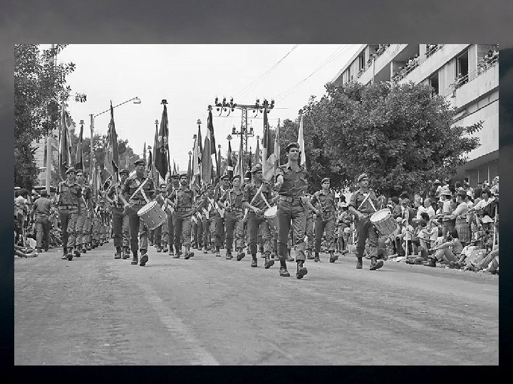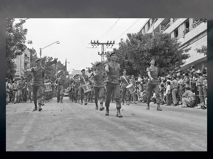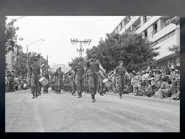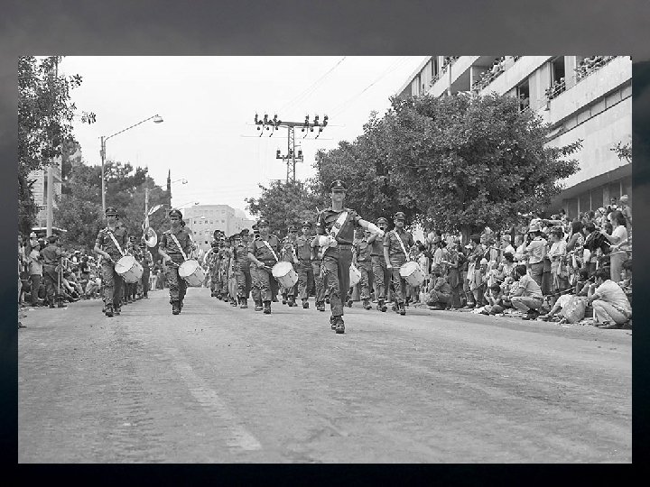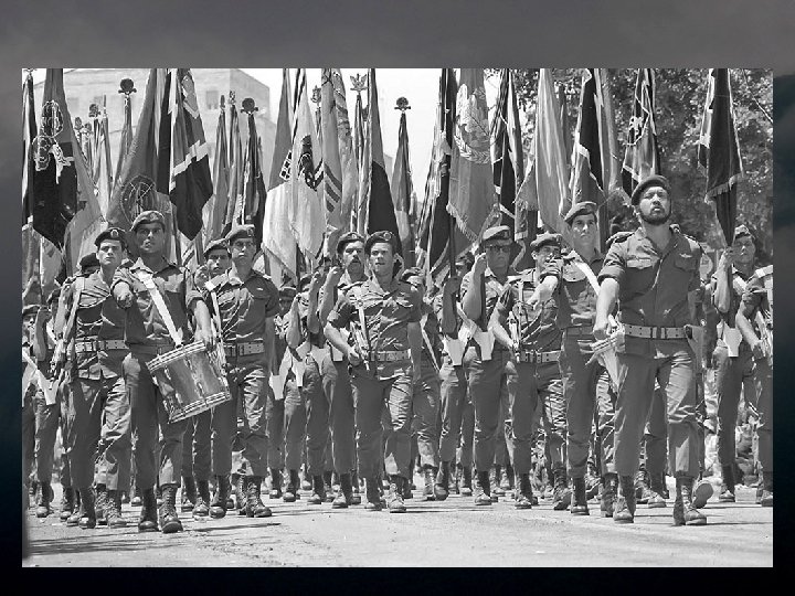 1973 יום העצמאות ה 52 - מאי The 25 th independence day - May 1973 In May 1973, Israel celebrated it's 25 th Independence Day. Joy was great, and the military parade was held in Jerusalem in that year. The planes roared overhead, tanks plowed the roads and the best of our sons marched proudly through the city. Five months later, in it’s holiest day – Yom Kippur, Israel was caught complacent and unprepared by a combo attack of Egypt and Syria. Many of it’s sons fell in the cruel battles in the north and south. Many of them marched this last march. The victory was great – the victory of the simple people, despite its leaders' failure, but the price of complacency was huge and painful, to this day. This presentation is in memory of the men and women that fell in the heavy fighting. במאי 3791 חגגה ישראל את יום העצמאות ה 52 שלה. השמחה היתה גדולה, והמצעד . הצבאי נערך בירושלים באותה שנה המטוסים חלפו מעל, הטנקים חרשו את הכבישים וטובי בנינו צעדו בגאווה ברחובות . העיר חמישה חודשים מאוחר יותר - ביום הכיפורים נתפסה ישראל שאננה ולא מוכנה בהתקפה משולבת של מצרים וסוריה. רבים מבניה נפלו בקרבות האכזריים בצפון . ובדרום . רבים מהם צעדו במצעד האחרון הזה , הניצחון היה גדול, ניצחון העם הפשוט למרות כשל מנהיגיו, אך מחיר השאננות . היה עצום וכואב, עד עצם היום הזה מצגת זו מוקדשת לזכר הנופלים והנופלות . בקרבות הכבדים