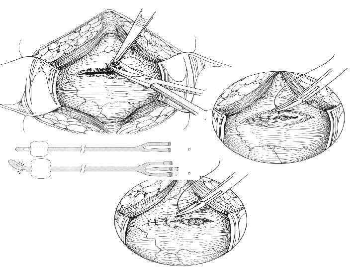 ЛЕЧЕНИЕ: ВНУТРИБРЮШИННЫЙ РАЗРЫВ И ОТКРЫТЫЕ ПОВРЕЖЕДЕНИЯ • Неотложная операция (нижнесрединная лапаротомия, ревизия брюшной полости, ревизия мочевого пузыря через имеющийся дефект, цисторафия двурядный швом 3/0, далее цистостомия, в случае удовлетворительного гемостаза – катетер Folley 22 Fr по уретре на 10 -14 дней или надлобковый катетер (см. слайды).