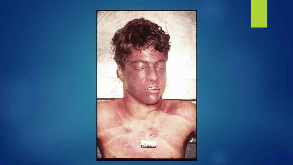 Мозг, как правило, неизменен; изредка наблюдаются гиперемия и даже кровоизлияния под мозговые оболочки. В легких — ателектатические поля с белковым пропитыванием и выраженным полнокровием капилляров ( «пестрое карминовое легкое» ). Просветы бронхов в этих участках щелевидны, содержат кровянистую мокроту. Сердце иногда расширено. В брюшной полости — субсерозные кровоизлияния, иногда разрывы отдельных органов.