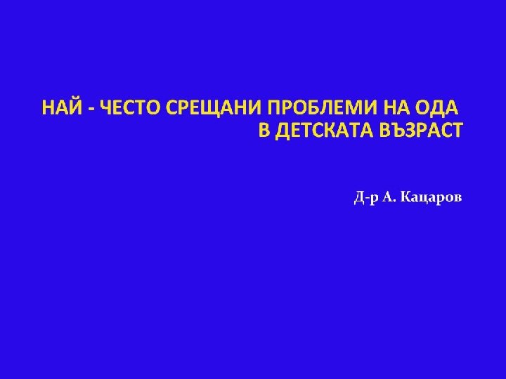 ОРТОПЕДИЧНИ ПРОБЛЕМИ НА ОДА Септичен артрит и остеомиелит Транзиторен синовиит на ТБС Болест на Пертес – идиопатична аваскуларна некроза на главата на бедрената кост. Група на остеопетрозите – остеосклероза. Краниотубуларна дисплазия и хиперостозите. Полидактилия и синдактилия Артрогрипоза Болест на Панер Висока скапула (деформитет на Sprengel) Ганглион Остеоходродисплазии – в т. ч. и ахондроплазия Тортиколис Неправилен стоеж Сколиоза