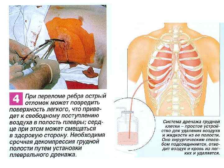 Врачебная помощь: q. Новокаиновая блокада; q. Пункция плевральной полости; q. Дренирование плевральной полости по Бюлау