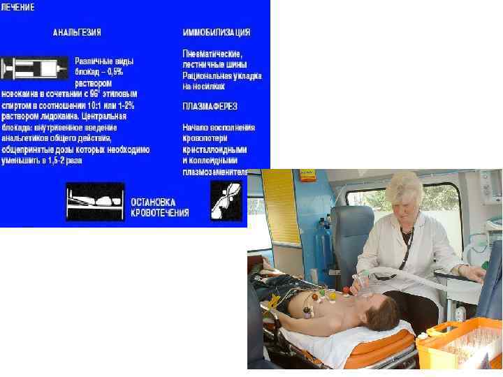1 -я медицинская помощь Очистить полость рта и носа; По показаниям: ИВЛ, ингаляция кислородом; Полусидячее положение больного; Окклюзионная повязка при открытом или клапанном пневмотораксе q Обезболивание