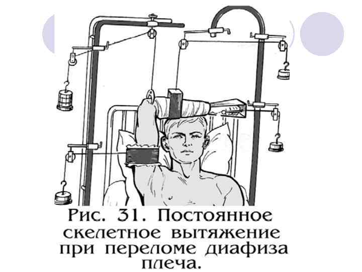 Больному показано лечение в условиях стационара: производится репозиция с последующей иммобилизацией. При переломе в верхней 1/3 диафиза показана отводящая шина со скелетным или клеевым вытяжением по оси. Перелом в средней и нижней 1/3 плеча чаще требует наложения скелетного вытяжения и торако-брахиальной гипсовой повязки. Иммобилизация – 2 -3 мес, затем реабилитация в течение 4 -6 недель. Трудоспособность больных восстанавливается через 2, 5 -3 месяца (допускается труд без физической нагрузки)