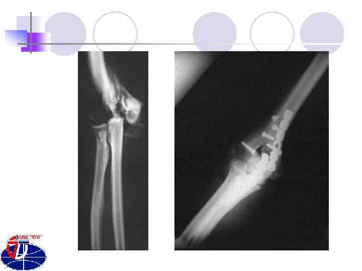 ВНЕСУСТАВНЫЕ ПЕРЕЛОМЫ Внесуставные надмыщелковые переломы после репозиции фиксируются гипсовой лонгетой на отводящей шине или скелетным вытяжением за локтевой отросток на 4 5 недель, реабилитация составляет 4 6 недель. Трудоспособность восстанавливается через 2, 5 3 месяца. Иногда применяют аппараты наружной фиксации или накостный остеосинтез (гвоздями, штифтами и др. ). Наилучшие результаты достигаются при внесуставных надмыщелковых переломах