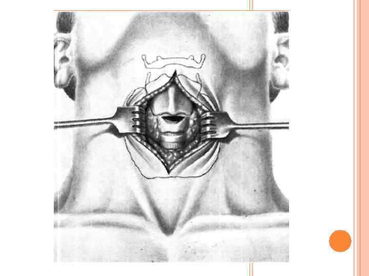 ТЕХНИКА ВЫПОЛНЕНИЯ Больной лежит на спине, под плечи подкладывается валик, голова запрокинута назад. Такое положение больного позволяет максимально приблизить гортань и трахею к передней поверхности шеи. Операцию производят как под эндотрахеальным наркозом, так и под местной анестезией. У детей, как правило, используется эндотрахеальный наркоз. Местную инфильтрационную анестезию выполняют 0, 5— 1 % раствором новокаина или 0, 5 % раствором тримекаина. В экстремальных условиях оперируют без анестезии.