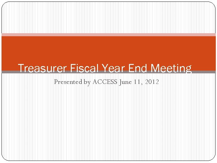 Treasurer Fiscal Year End Meeting Presented by ACCESS June 11, 2012