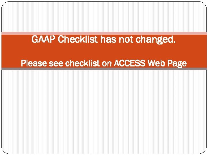 GAAP Checklist has not changed. Please see checklist on ACCESS Web Page