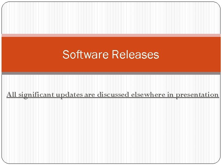 Software Releases All significant updates are discussed elsewhere in presentation