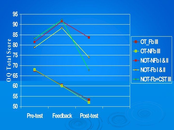 Research Program Ø SIX CLINICAL TRIALS IN WHICH WE ATTEMPTED TO REDUCE DETERIORATION RATES BY PROVIDING PROGRESS FEEDBACK TO PSYCHOTHERAPISTS Lambert, et al. 2001 Lambert, et al. 2002 Whipple, et al. 2003 Hawkins, et al. 2005 Harmon, et al. 2007 Slade, et al. 2008 Crits Christoph et al 2011 Simon, et al. Inpatient Eating Disorders, 2012 Ø Random assignment of patients to experimental condition blocked on therapist (every therapist had patients for whom they received feedback and were denied feedback) N = 4, 000