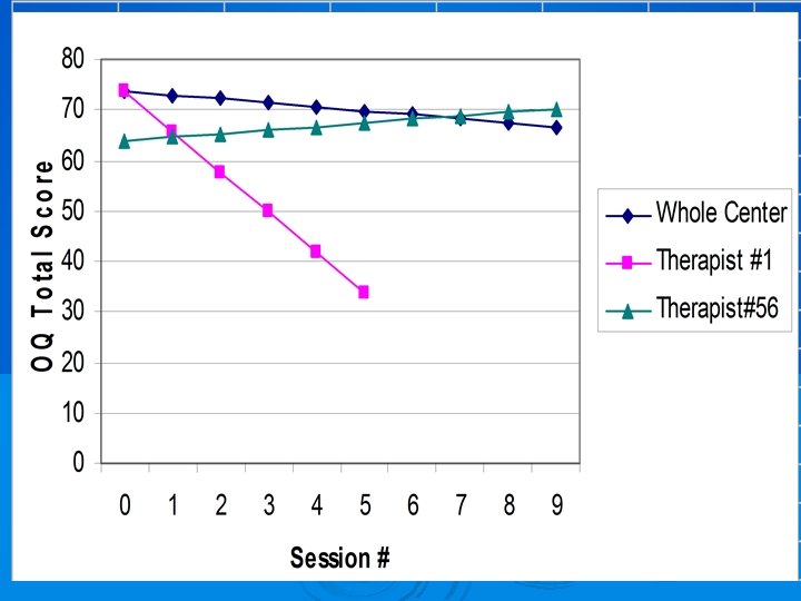 Therapist Variability in Outcome Ø Ø Ø Since 1996, 270 different professionals and trainees have provided treatment. The CCC’s database includes nearly 27, 009 individual, couple, family, biofeedback, and group sessions. 179, 000 OQ-45 s have been gathered since 1996. average improvement scores for the 26 current professionals, compared with an average improvement score computed for all previous professional therapists and all past and present trainees. minimum of 186 clients per therapist to a maximum of 1, 054 clients per therapist;