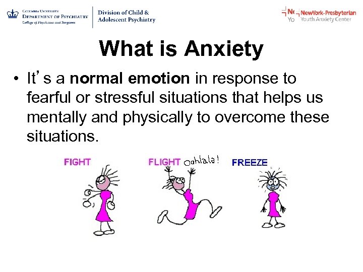 What is Anxiety • It’s a normal emotion in response to fearful or stressful situations that helps us mentally and physically to overcome these situations.