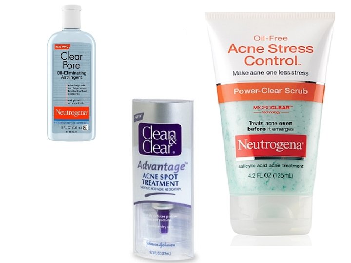 Salicylic Acid l Available in wide range: 0. 5%-2% l A milder, less effective alternative for teretoin l MOA: acts as a surface keratolytic, mild comedolytic agent l When used in cleansing preparations: adjunctive treatment