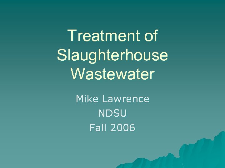Treatment of Slaughterhouse Wastewater Mike Lawrence NDSU Fall 2006