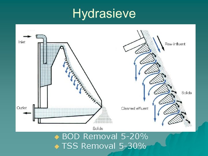 Hydrasieve BOD Removal 5 -20% u TSS Removal 5 -30% u