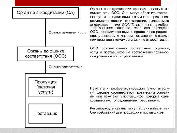 • Обязательства органа по оценке соответствия • ОА должен требовать от ООС подтверждения следующего: a) ООС должен принимать на себя обязательство непрерывно выполнять требования аккредитации, установленные ОА в тех областях, в которых аккредитация запрашивается или выдается. Это предусматривает согласие адаптироваться к изменениям в требованиях к аккредитации b) по запросу ООС должен предоставлять условия, позволяющие ОА проверять выполнение требований аккредитации. Это применимо для всех мест, где предоставляются услуги по оценке соответствия; c) ООС должен обеспечить доступ к информации, документам и отчетам, необходимым для оценки и сохранения аккредитации; d) ООС, при необходимости, должен обеспечить доступ к тем документам, которые позволяют оценить уровень беспристрастности ООС и независимости от его родственных организаций; e) ООС должен организовать освидетельствование предоставляемых им услуг в случае запроса со стороны ОА; f) ООС должен ссылаться на аккредитацию только в отношении той области аккредитации, на которую ему выдана аккредитация; g) ООС не должен использовать свою аккредитацию таким образом, который может нанести вред репутации ОА h) ООС должен вносить плату, установленную ОА. • ОА должен требовать, чтобы аккредитованный ООС без промедления информировал его о значимых изменениях, имеющих отношение к аккредитации ООС, его статусу или деятельности, связанных: a) с юридическим, коммерческим, имущественным или организационным статусом; b) с организацией, высшим руководством и ключевыми специалистами; c) с основной политикой; d) с ресурсами и помещениями; e) с областью аккредитации и f) с другими факторами, которые могут влиять на способность ООС выполнять требования аккредитации. Ответственность ОА и ОСС