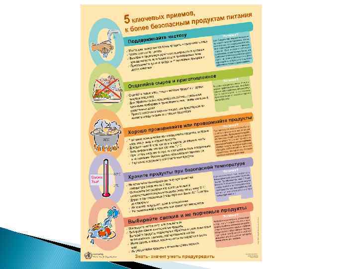 Отсутствие работников с кишечными инфекциями При появлении признаков кишечного расстройства (жидкий стул, температура, рвота, тошнота, боли в животе) работник должен быть отстранен от работы и направлен к инфекционисту поликлиники по месту жительства. Даже при слабо выраженных симптомах и соблюдении правил личной гигиены (мытье рук и пр. ) данный сотрудник представляет серьезную угрозу безопасности питания. Ни в коем случае нельзя заниматься самолечением, т. к. нормализация стула и субъективное улучшение самочувствия не говорит о полном выздоровлении. К сожалению, при неправильном лечении может сформироваться бактерионосительство, при котором человек хорошо себя чувствует, но патогенные микроорганизмы присутствуют в его организме и выделяются наружу.