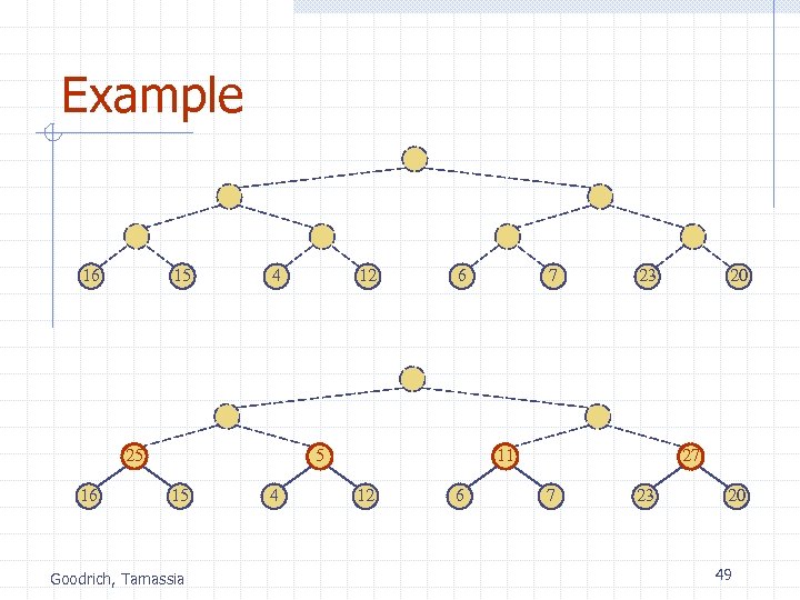 Example 16 15 4 25 16 12 6 5 15 Goodrich, Tamassia 4 7 23 11 12 6 20 27 7 23 20 49