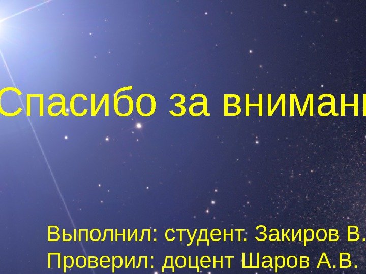 Спасибо за внимание Выполнил : студент. Закиров В. Р. Проверил : доцент Шаров А. В.