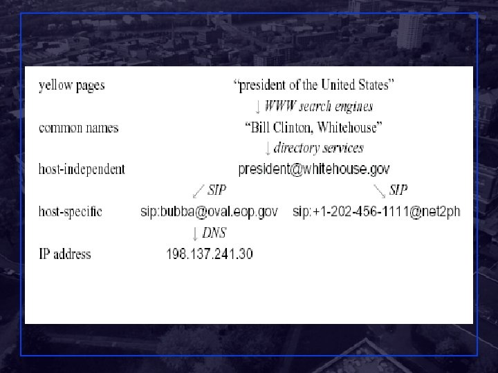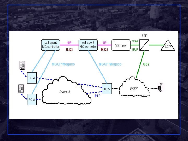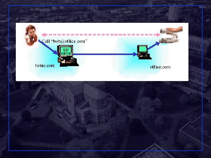 Q. 931 SETUP Q. 931 CONNECT Terminal Capabilities Open Logical Channel Destination address (Bob@office. com) INVITE 200 OK Media capabilities (audio/video) Media transport address (RTP/RTCP receive) ACK