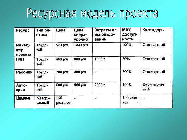 2 основных типа планирования: • От ресурсов Длительность проекта и отдельных работ зависит от наличия или отсутствия возможностей использования необходимых ресурсов • От длительности Потребность в ресурсах определяется в зависимости от сроков выполнения задач