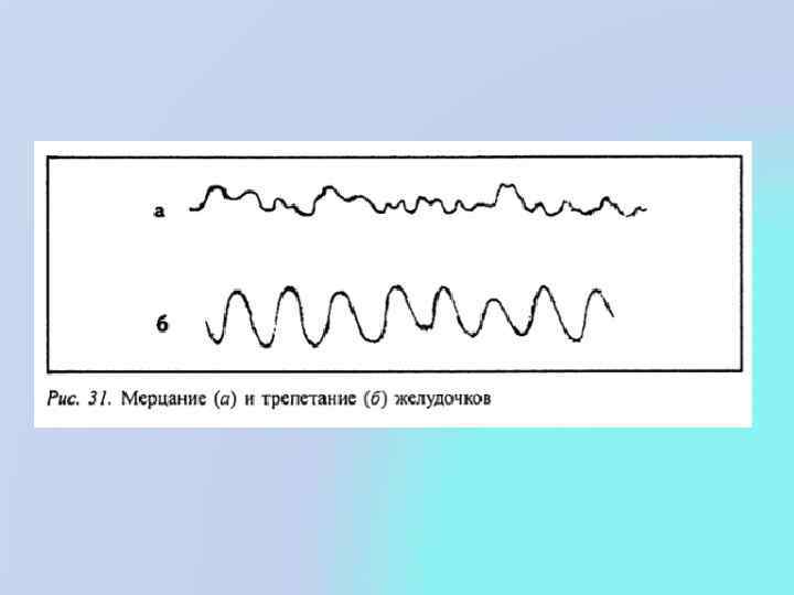 • Трепетание и мерцание (фибрилляция) желудочков являются одной из частых причин внезапной смерти больных с острым инфарктом миокарда, хронической ишемической болезнью сердца, гипертонической болезнью, миокардитами, аортальными пороками сердца и т. д.