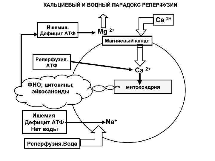 Патогенез • Неблагоприятные эффекты реоксигенации ишемизированной ткани с образованием свободных радикалов кислорода - «кислородный парадокс» • Механическое повреждение кардиомиоцитов во время восстановления кровотока.