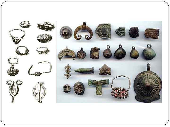 • Нам неизвестно, изготовляли ли славяне в древнейший период их существования украшения и существовало ли у них ювелирное производство. Почти все то, что является характерным для украшений славян языческого периода, появилось, только в конце этого же периода, с VIII по XI век, когда славяне подверглись сильному византийскому, восточному и скандинавскому влиянию, а на Западе — влиянию франков. До этого украшениями славяне были весьма бедны. В могильниках V—VIII веков мало встречается ремесленных изделий и украшений, что свидетельствует о большом упадке культуры, наступившем, очевидно, в связи с переселениями народов и потрясениями как данного, так и предшествовавшего ему периода. Более часто украшения, привозные или местные, начинают . появляться в славянских могилах только с VIII и главным образом с IX века. С этого времени и начинается новый подъем материальной культуры.