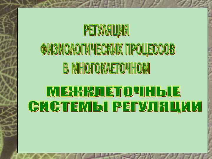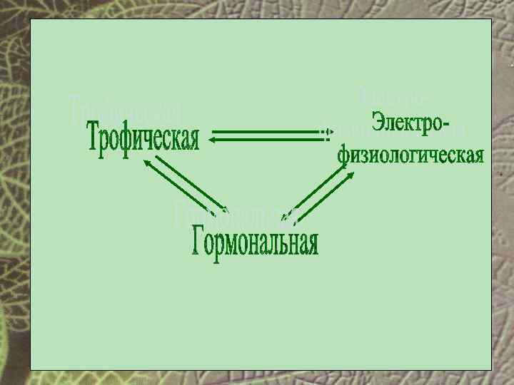 ТРОФИЧЕСКАЯ СИСТЕМА РЕГУЛЯЦИИ Взаимодействие с помощью питательных веществ – наиболее простой способ связи между клетками, тканями и органами