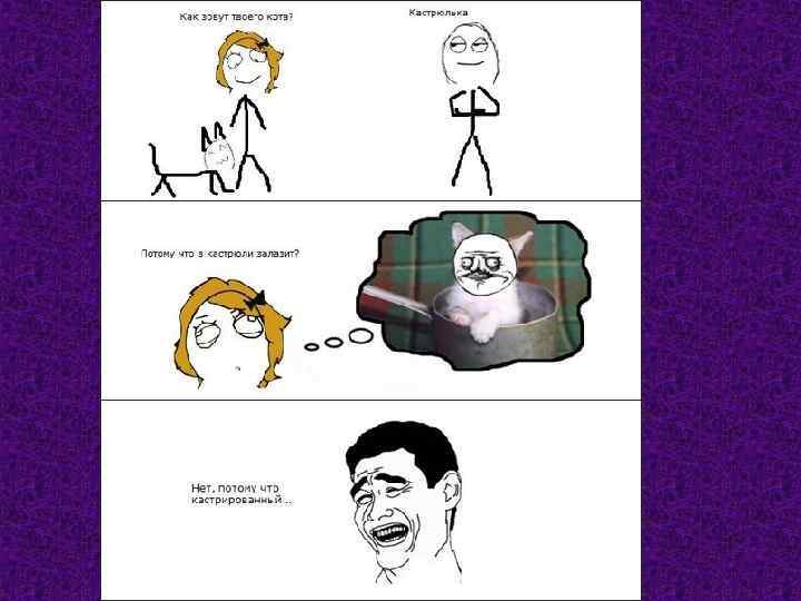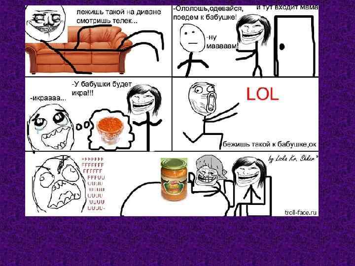Содержание: 1. Cмотреть презентацию сначала 2. Происхождение Troll face 3. Происхождение yao_ming 4. Происхождение Aww Yea Guy 5. Происхождение Big Grin 6. Происхождение Cereal Guy 7. Происхождение Challenge Accepted 8. Происхождение Everything went better than expected • 9. Происхождение Feel Like a Sir • •
