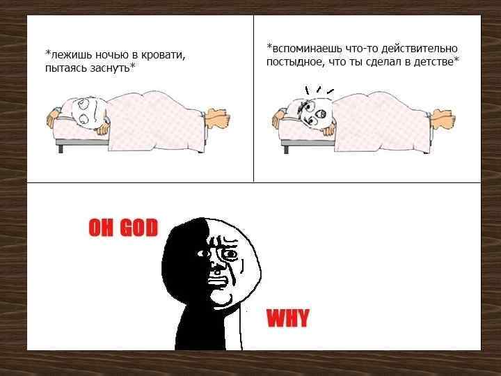 Oh God Why (О Боже, почему? ) • Серия комиксов с персонажем, половина лица которого находится в тени, который произносит фразу "О Боже, почему? ". Обычно этот кадр является завершающим в комиксе, в котором описываются неловкие, неприятные или постыдные воспоминания из детства. Первый комикс этой серии появился в июле 2011 года.