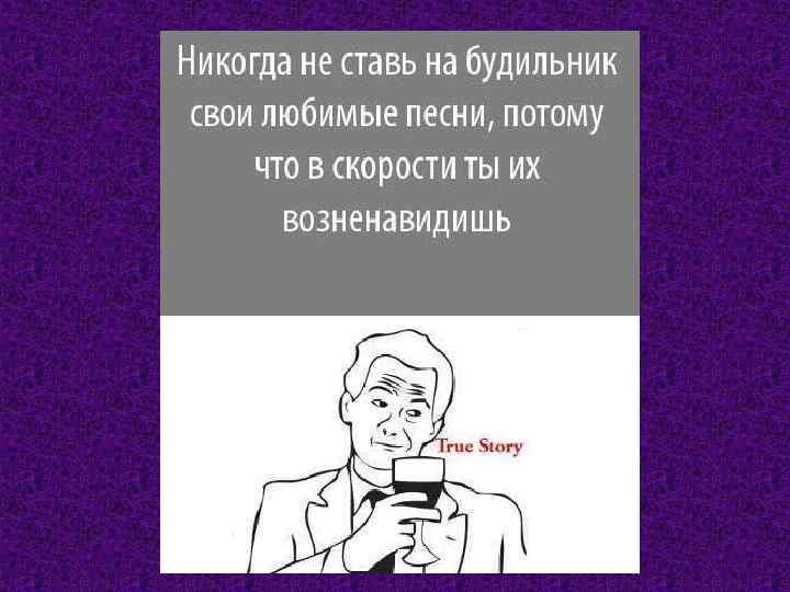 True Story (Правдивая история) Черно-белый рисунок, состоящий из человека с бокалом вина и надписи True Story (Правдивая история). Обычно используется как заключительная сцена, показывающая, что комикс основан на реальных событиях.