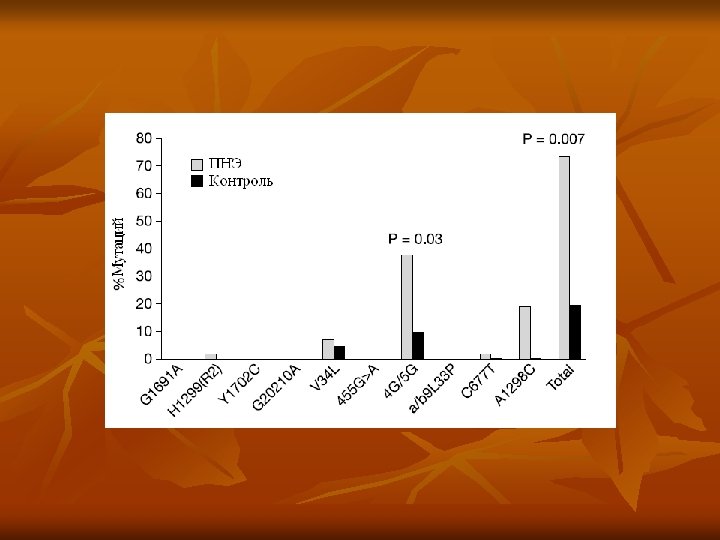 Список генов ответственных за врожденную тромбофилию. n n n n Мутация Лейден V Протромбин 20210 А мутация Протеин С дефицит Протеин S дефицит Антитромбин III дефицит MTHFR гена мутация Гипергомоцистеннемия