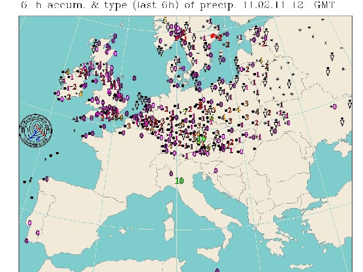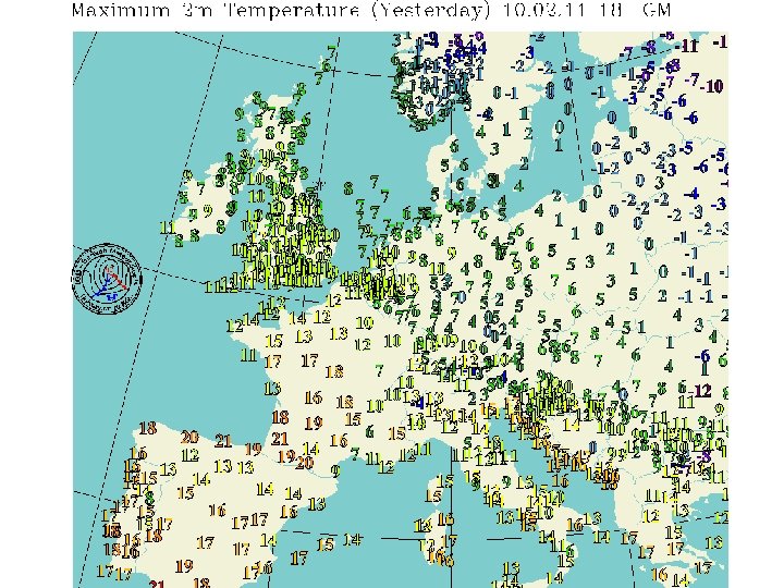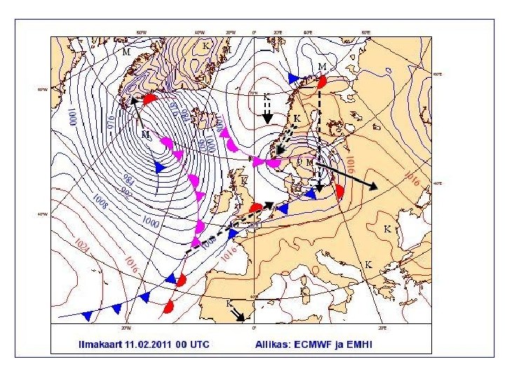 Informatsiooni kogumine • Enam kui 10000 sünoptilist jaama • Sünoptilised vaatlusajad iga 3 tunni tagant, kell 00 kuni 21 GMT (UTC) • WMO keskus Genfis, ülemaailmsed andmekeskused Moskvas, Melbourne´is ja Washingtonis, regionaalsed keskused (Norrköping, Offenbach, Toulouse, Exeter) • Rahvuslikud ilmateenistused (EMHI)