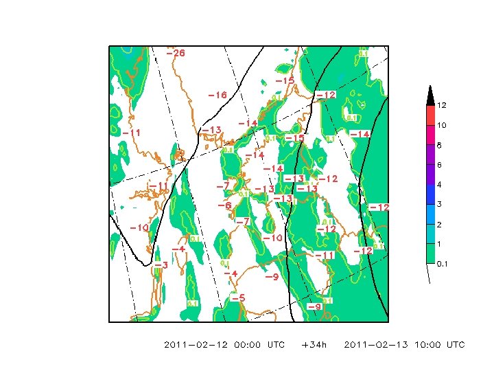 Sademete prognoos 12. veebruariks 2011 a. kell 13 -19 GMT