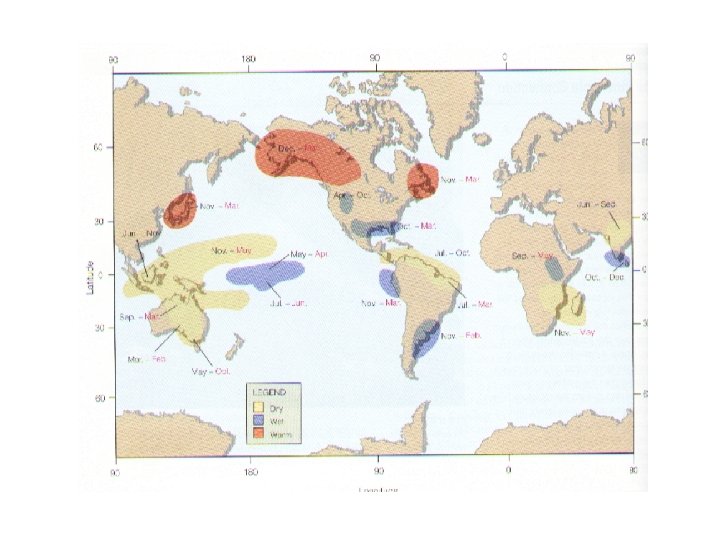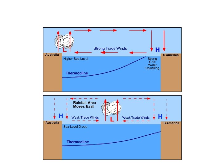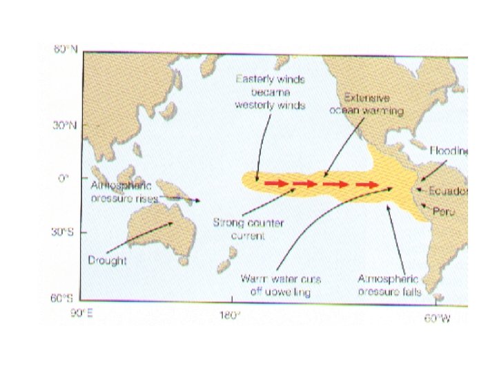 El Niño mõjutused • Lõuna-Ameerika läänerannikul, Ida. Aafrikas ja USA lõunaosas sademeterohke • Austraalias, Indoneesias, Lõuna-Aasias, Kesk-Ameerikas ja Lõuna-Aafrikas põuane • Põhja-Ameerikas soe talv • Atlandi ookeanil pole orkaane