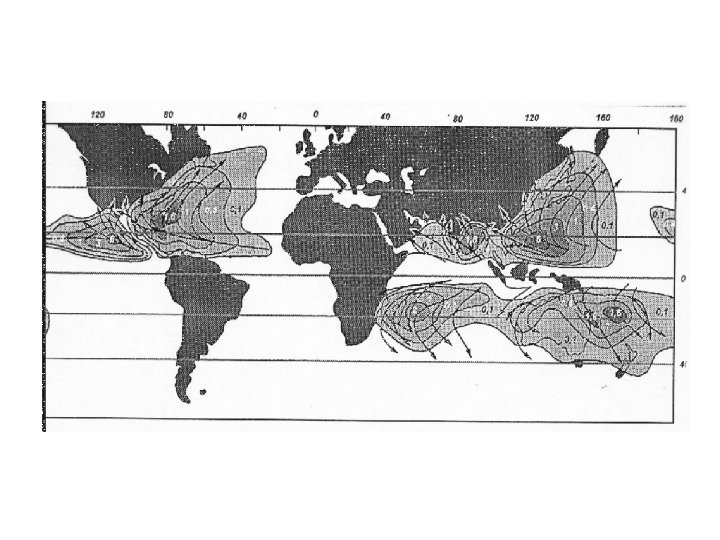 Troopilise tsükloni arengustaadiumid • Troopiline häiritus - tugevad äikesevihmad, nõrgad tuuled • Troopiline depressioon - tuul tugevneb 1017 m/s, kujuneb madalrõhkkond • Troopiline torm - järsk rõhu langus, tuule kiirus 17 -32 m/s • Orkaan - tuul tugevam kui 32 m/s