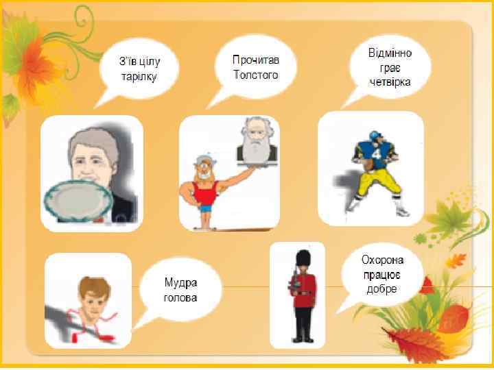 2. …Еней, таку уздрівши цяцю, не знав зі страху, де стояв… 3. Вже поставила турбіну міцна робочого рука… 4. Перо моє пісні мережить… 5. Вітер з гаєм розмовляє, шепче з осокою… 6. невесело сміявся.
