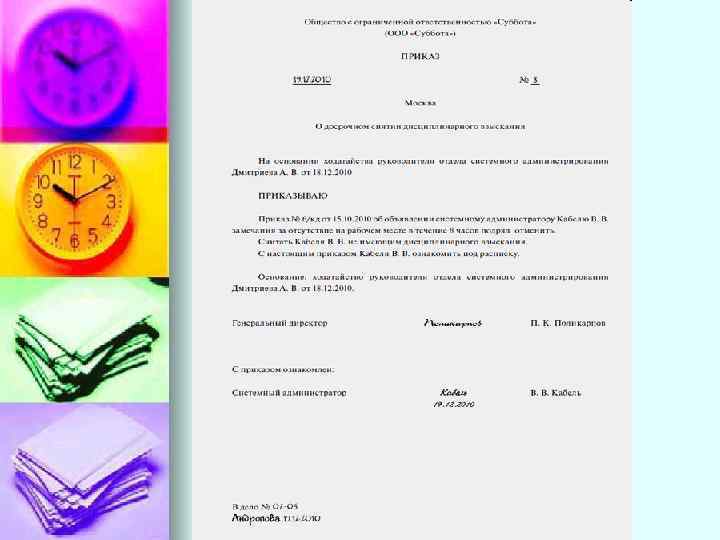 Основные дисциплинарные взыскания: 1) ЗАМЕЧАНИЕ n 2) ВЫГОВОР n 3) УВОЛЬНЕНИЕ по соответствующим основаниям n