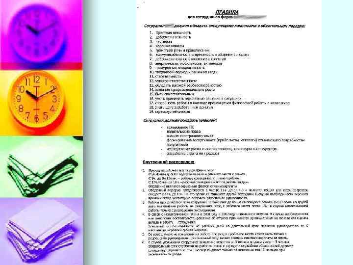 n Все работники организации должны быть ознакомлены с правилами внутреннего трудового распорядка. Работодатель обязан вывесить правила внутреннего распорядка на видном месте для общего ознакомления.